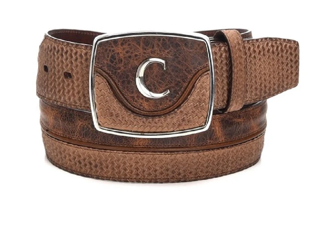 Men’s belt in genuine Cowhide leather, hand-woven detailing and lined buckle with Cuadra emblem.