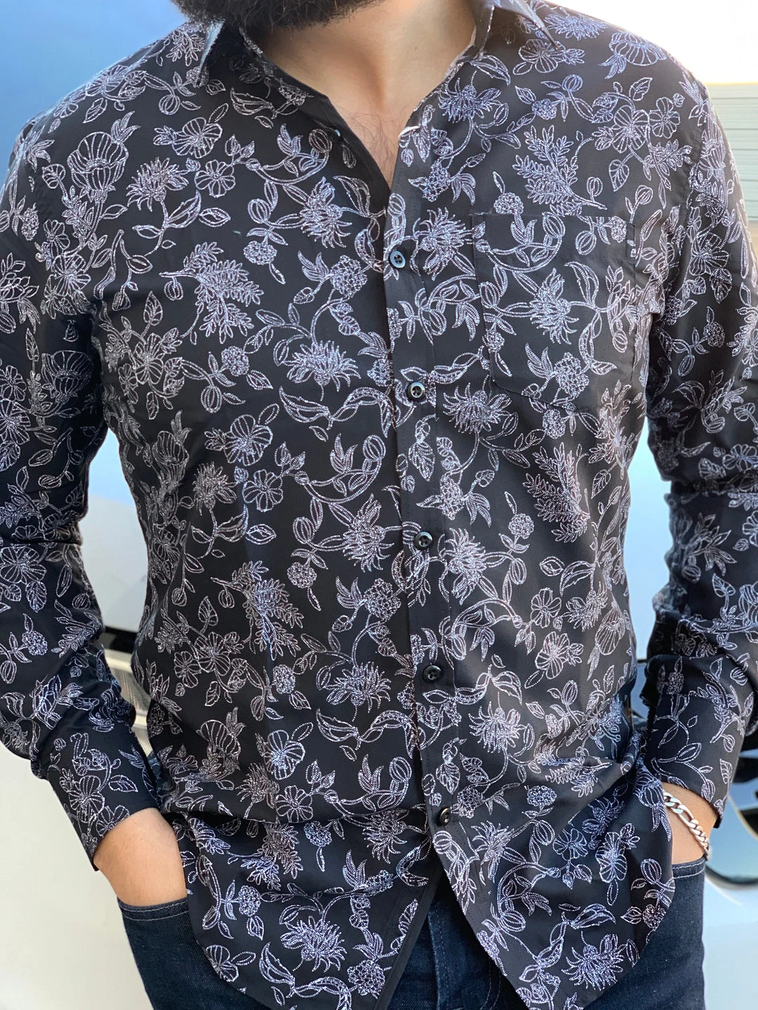 Men’s Italian Print Long Sleeve Shirt – B607