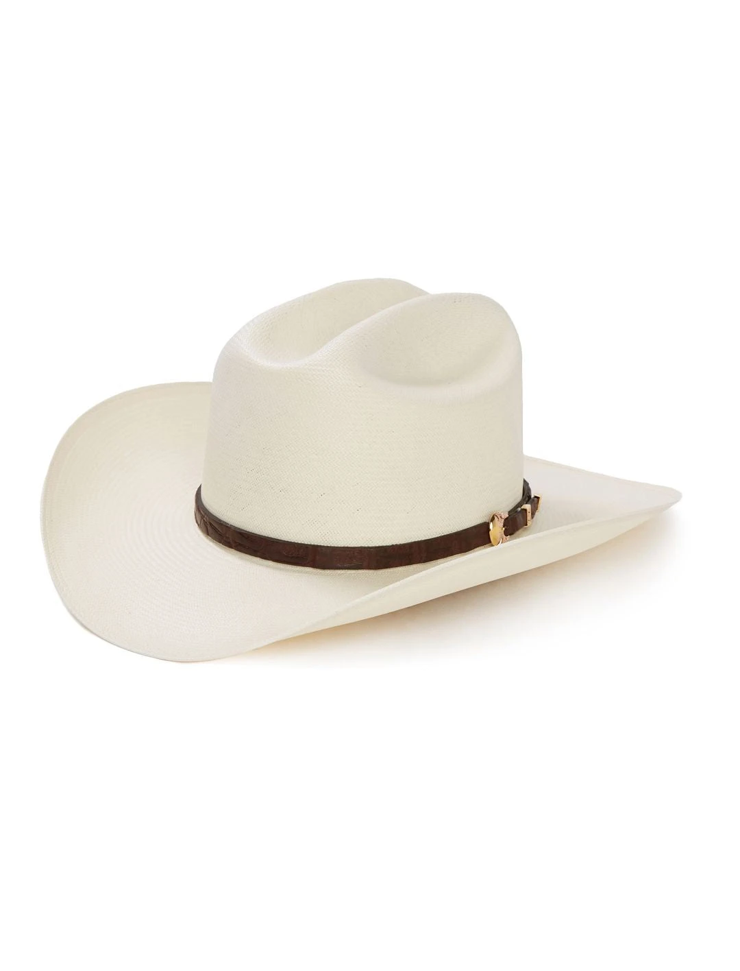The Evilla De Oro 1000X Straw Cowboy Hat is constructed of 1000X quality shantung straw and features 3BU 2X2 weave, satin/mesh lining and wide roan leather buckle accented hat band. Shantung Straw. Made in USA.