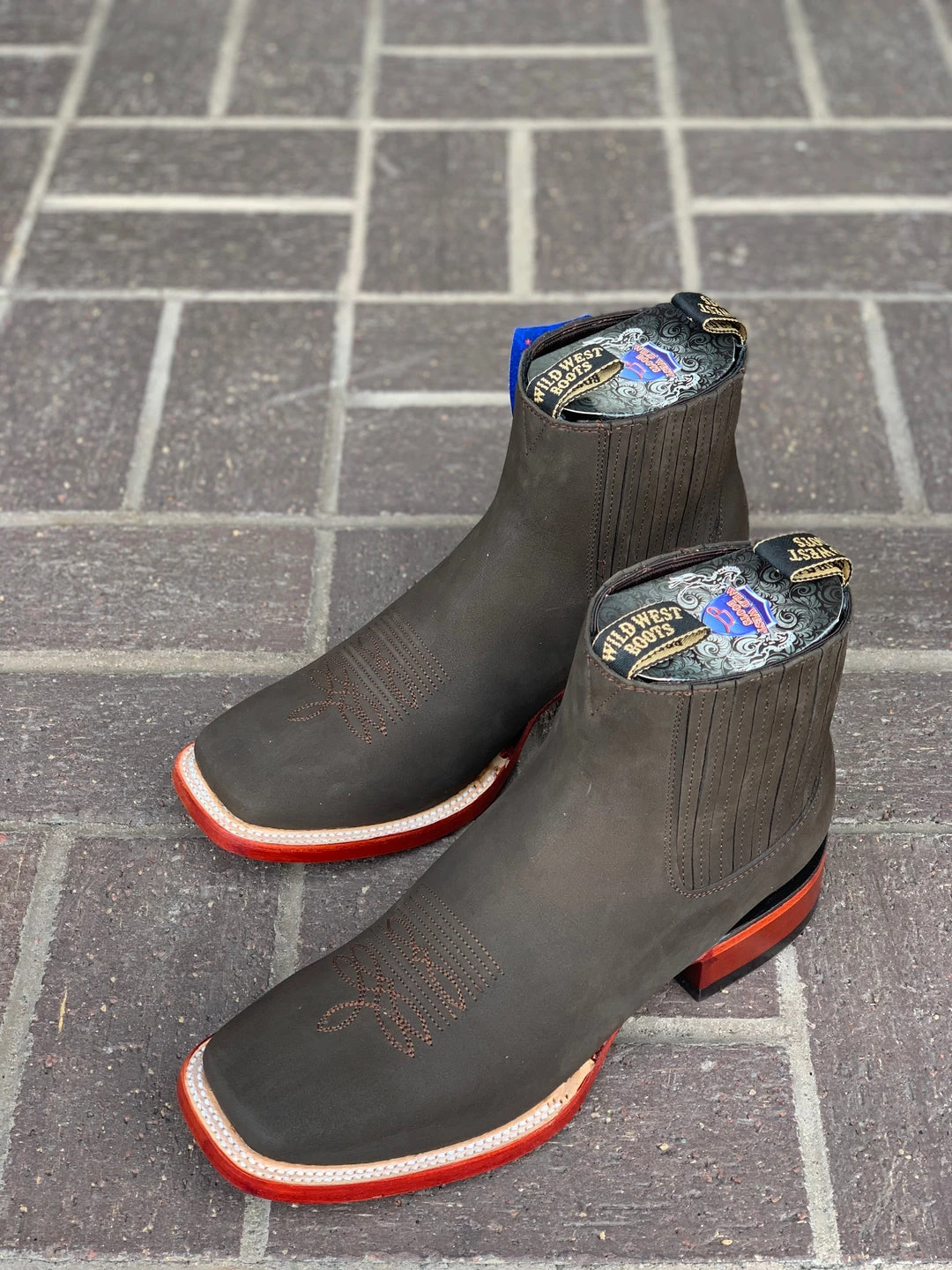 Guadalajara Western Wear Wild West Nobuk Black Wide Square Toe Botin Charro Men